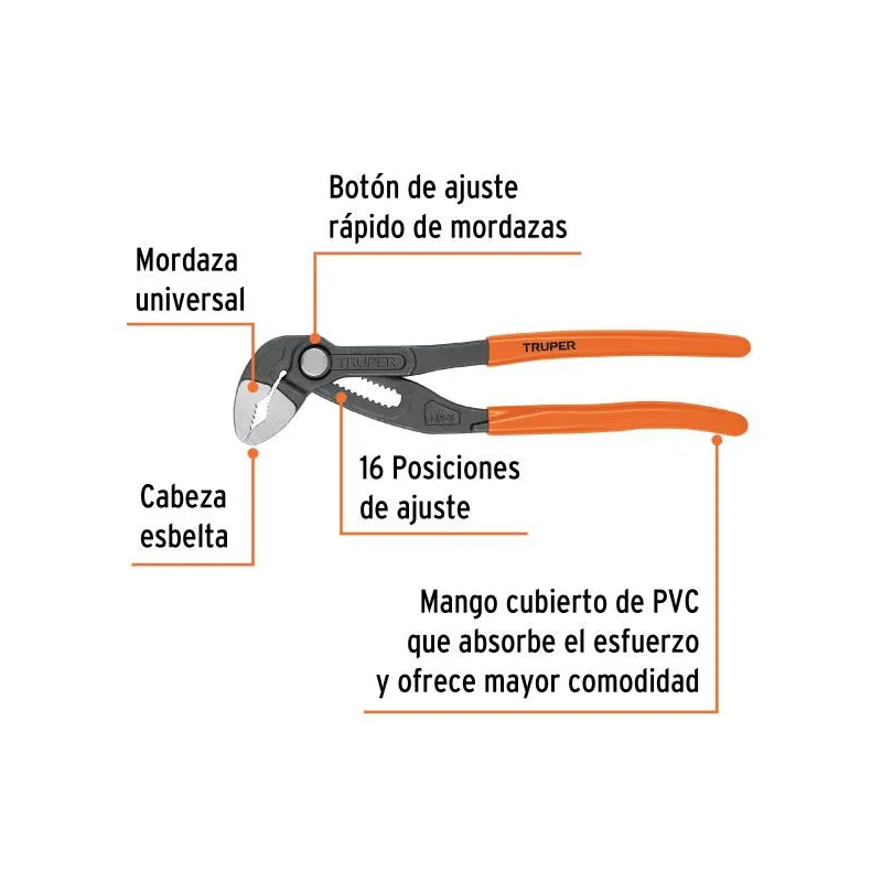 Pinza de extensión 10", mango de PVC, Truper