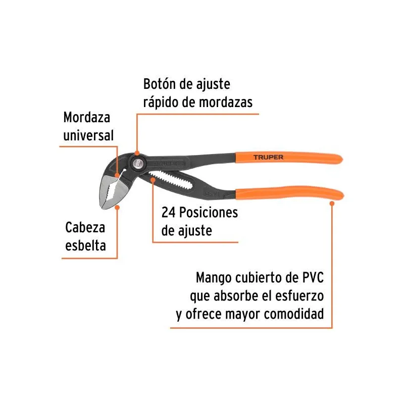 Alicates Picoloro 10" Aislado 1000V ConfortGrip 5Ajustes Truper 13068