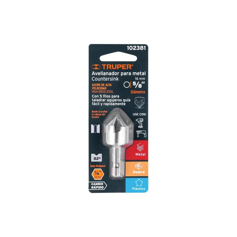 Avellanador HSS cambio rápido 5/8", Truper
