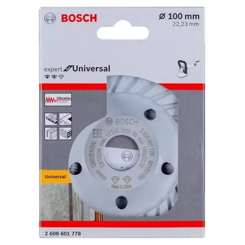 Vaso Diamantado Concreto 125mm x22.23mm Bosch 2608900651 Desbaste de hormigón de alta velocidad Desbaste muy rápido con Diamond Technology de Bosh Material de desecho extraído de manera eficiente a través de grandes ranuras para polvo Con orificio de 22,23 mm para amoladoras de hormigón y amoladoras angulares con contratuerca