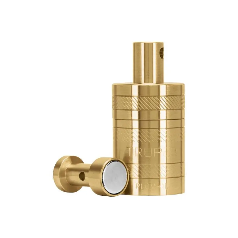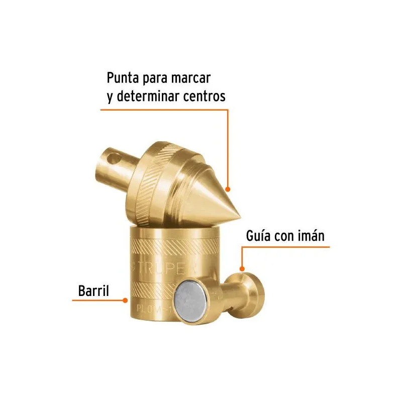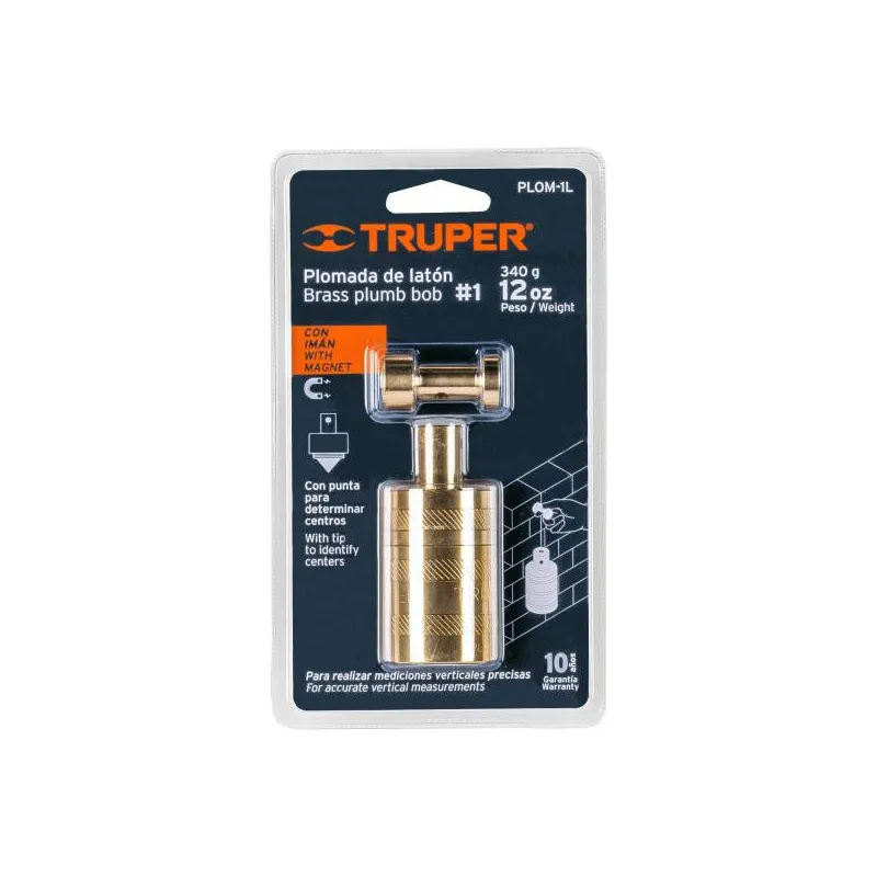 Plomada de Laton con Centro 352g, Para Uso en plomeria y construccion, PLOM-3L 17068 Truper Cuerpo de latón sólido con acabado pulido Punta para marcar y determinar centros Carrete (compás) para alinear perpendicularmente al piso, castillo, paredes, ventanas, puertas, etcétera Ideal para realizar mediciones verticales precisas