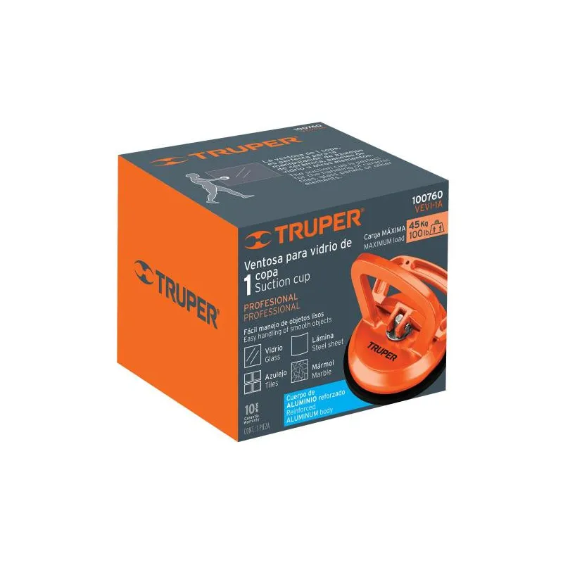 Ventosa de aluminio para vidrio, 1 copa de succión, Truper