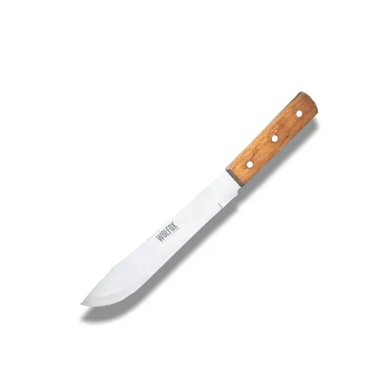 Cuchillo de cocina mango de madera. Hoja de acero inoxidable. Fijado con remaches de aluminio. Filo liso. Medida: 7". Tipo de empaque: fajilla. Mango de: madera.Excelente calidad. Resistencia y durabilidad. Lavar antes y después de utilizar. Evitar el uso de detergentes abrasivos al momento de su limpieza. Producto punzocortante. Mantener fuera del alcance de los niños. En Wolfox nuestro compromiso es brindar productos de la más alta calidad a nuestros clientes; es por eso que hemos realizado mejoras a nuestras herramientas tanto en material de manufactura como en su imagen y funcionalidad, cumpliendo con los más altos estándares de calidad y avalados por diversos estudios que nos distinguen de ser una de las mejores marcas, en esta ocasión contamos con el Cuchillo de cocina con mango de madera de 18cm - WF1709 Wolfox.
