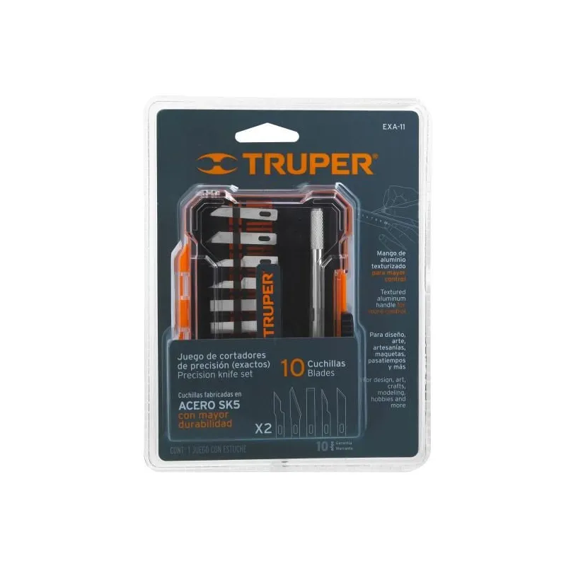 Juego de 10 Cuchillas Hobby con estuche, Truper 17512