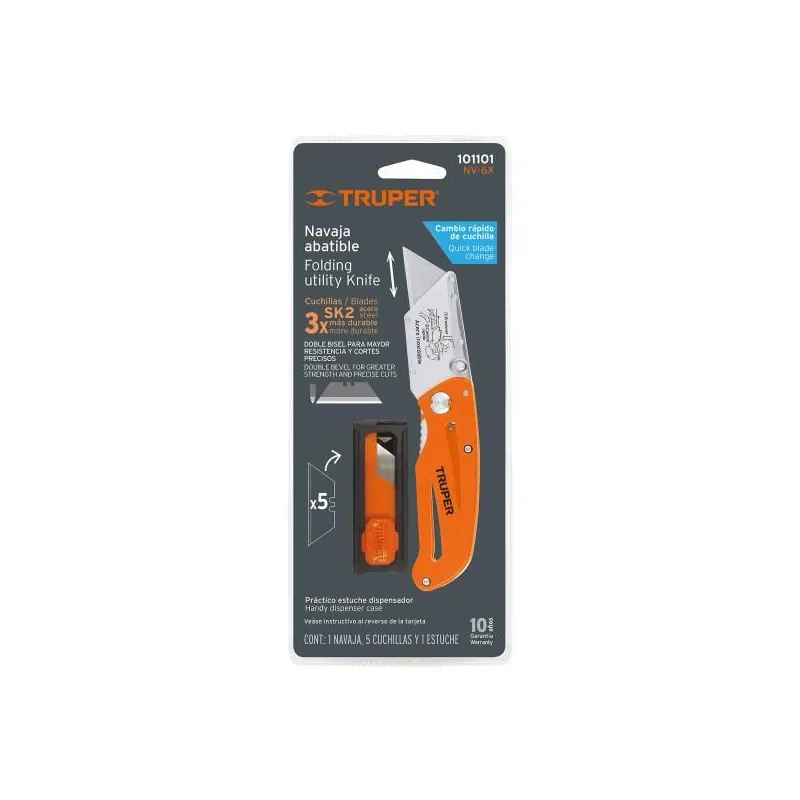Navaja Abatible 6" Cuchilla Cambio Rapido CuerpoAluminio AceroInox, Truper 101101
