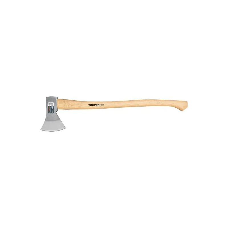 Hacha europeo 800g MangoHickory 15-1/2" Truper 100494 Cabeza en acero al carbono con doble tratamiento térmico para mayor resistencia y durabilidad de filo Mango con acabado de aceite de linaza que resalta la textura de las vetas de la madera y lo hace más suave al tacto y resistente al medio ambiente Ideal para talar árboles, partir madera y cortar ramas