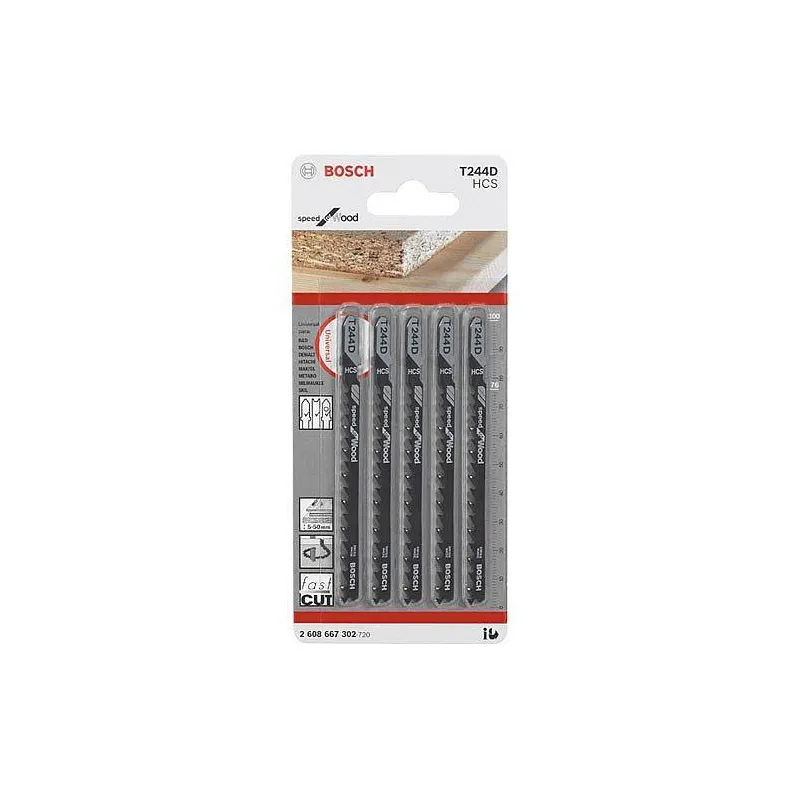 Hoja Caladora HCS Bosch T244D x5 Grueso Curvo 2608667302 Madera