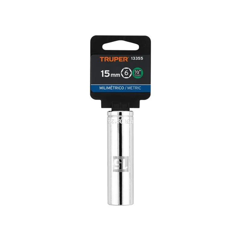 Dados 15mm E1/2 Tubulares Hexagonales CrVanadio, Truper 13355