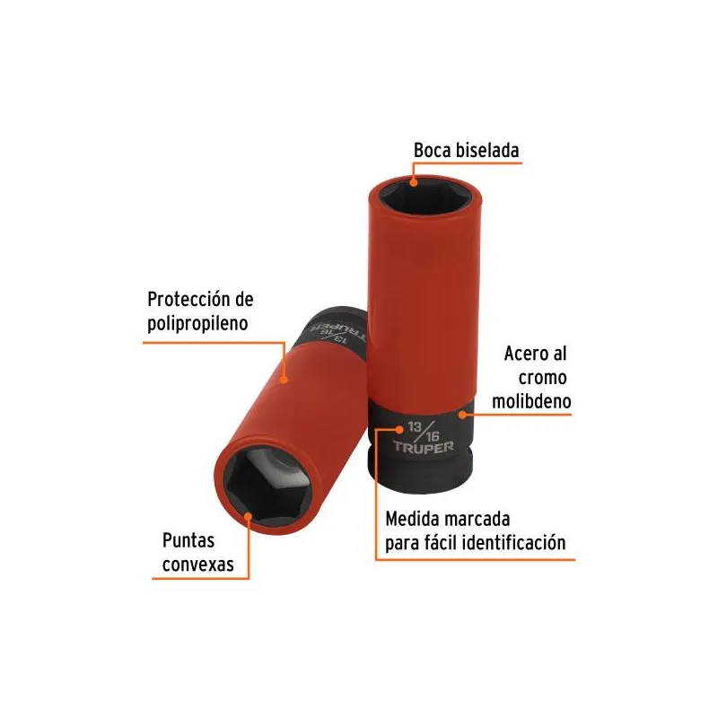 Dados 13/16" E1/2 Impacto Tubulares Hexagonales Con Polipropileno Truper 100928