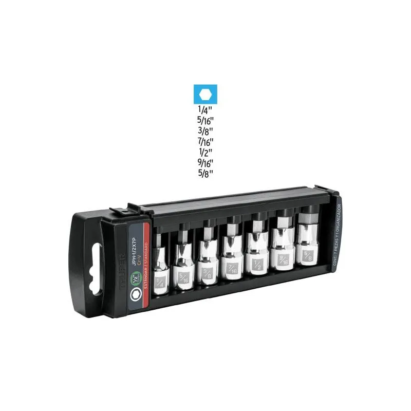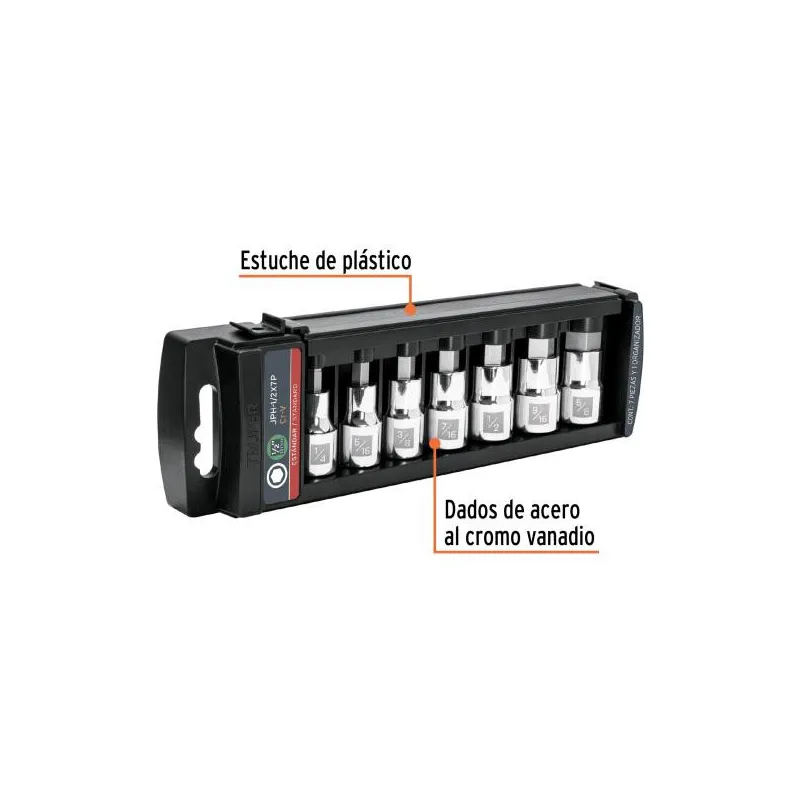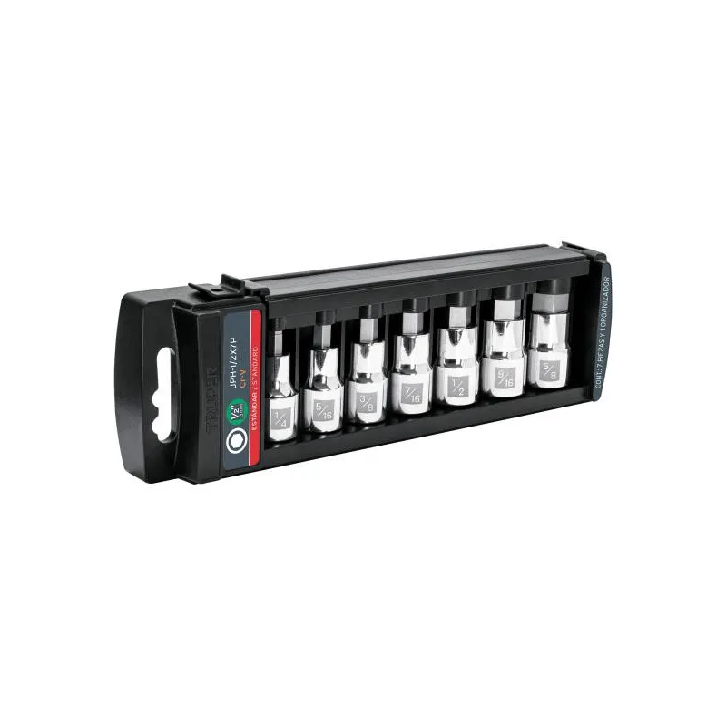 Juego de 7 dados cuadro 1/2" punta hexagonal std, Truper