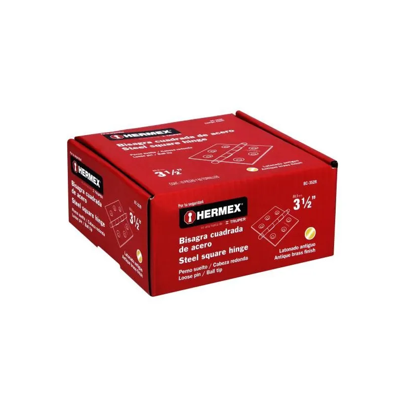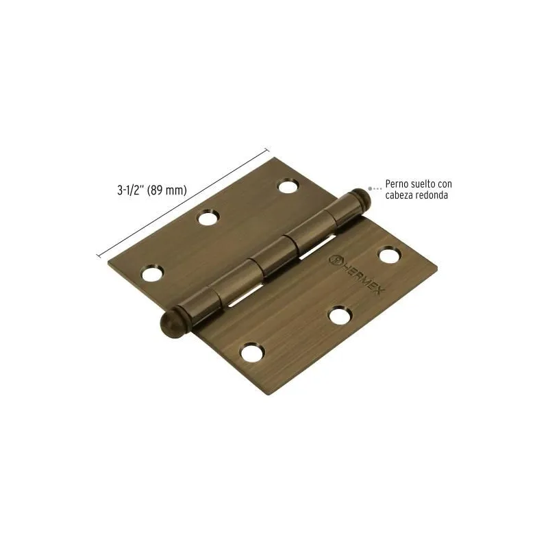 Bisagra Cuadrada 3 1/2" Capuchina Antiguo Cabeza Redonda, Hermex 43247
