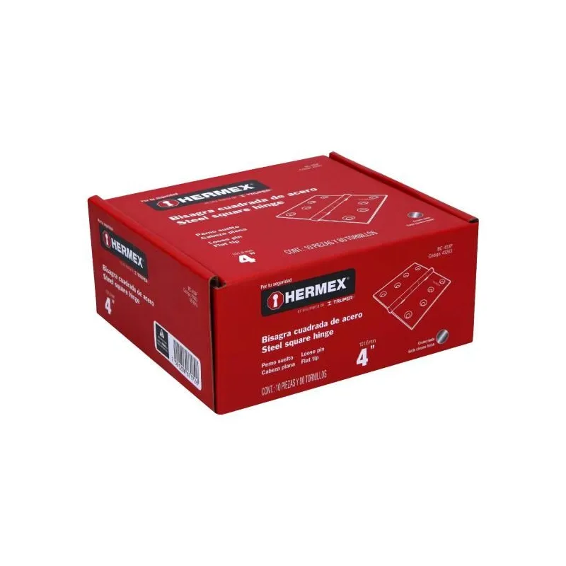 Bisagra cuadrada de acero cromo mate 4" Cabeza plana Tipo capuchina Espesor 2.5mm Incluye pernos, BC-401P 43263 Hermex