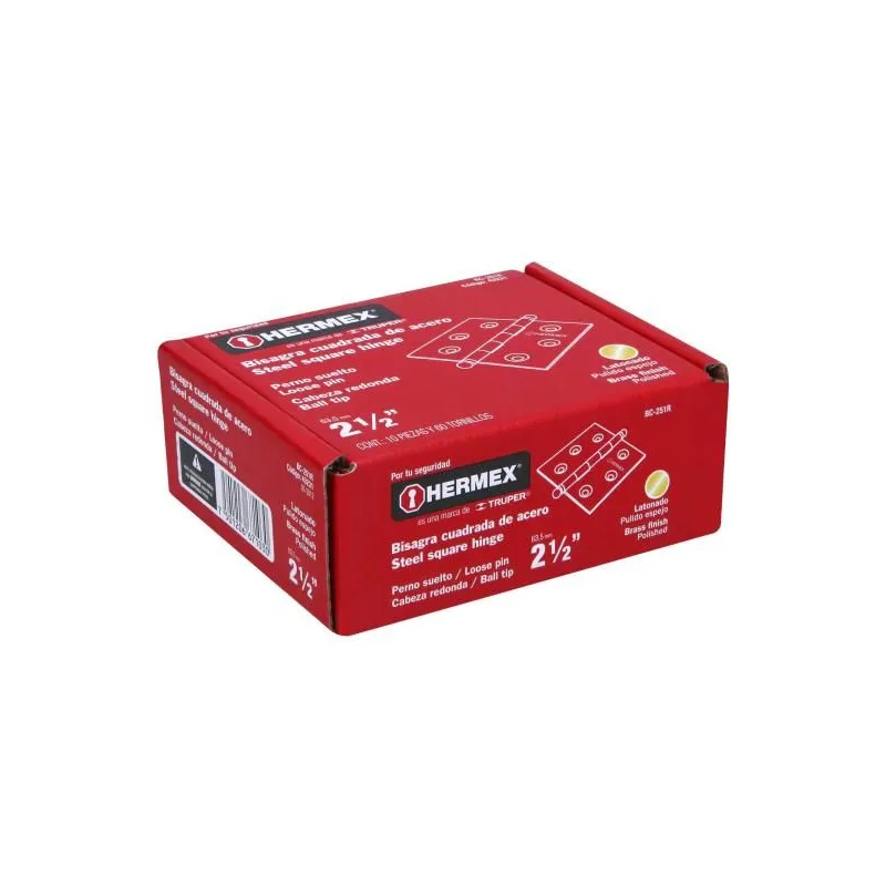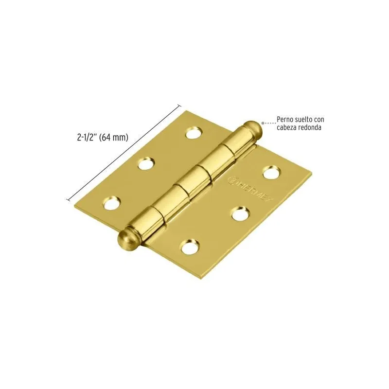Bisagras cuadrada 2-1/2" Acero Dorado Capuchina CRedondo 1.8mm Hermex 43231