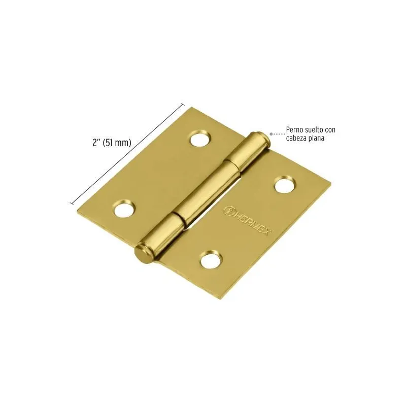 Bisagras cuadrada 2" Acero Dorado Capuchina Cplana 1.5mm Hermex 43235
