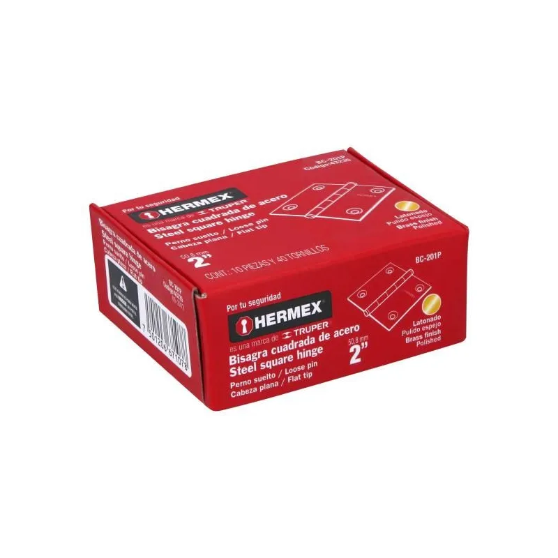 Bisagra cuadrada de acero dorado 2" Cabeza plana Tipo capuchina Espesor 1.5mm Incluye pernos, BC-201P 43235 Hermex