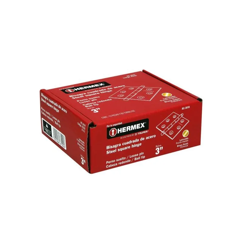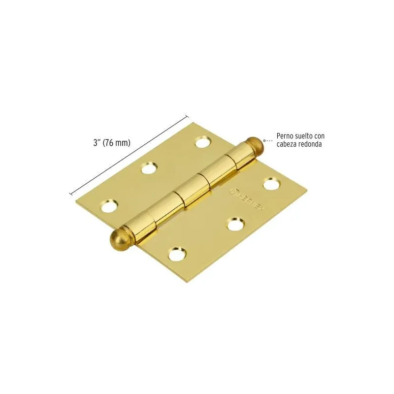 Bisagras cuadrada 3" Acero Dorado Capuchina CRedondo 2mm Hermex 43232