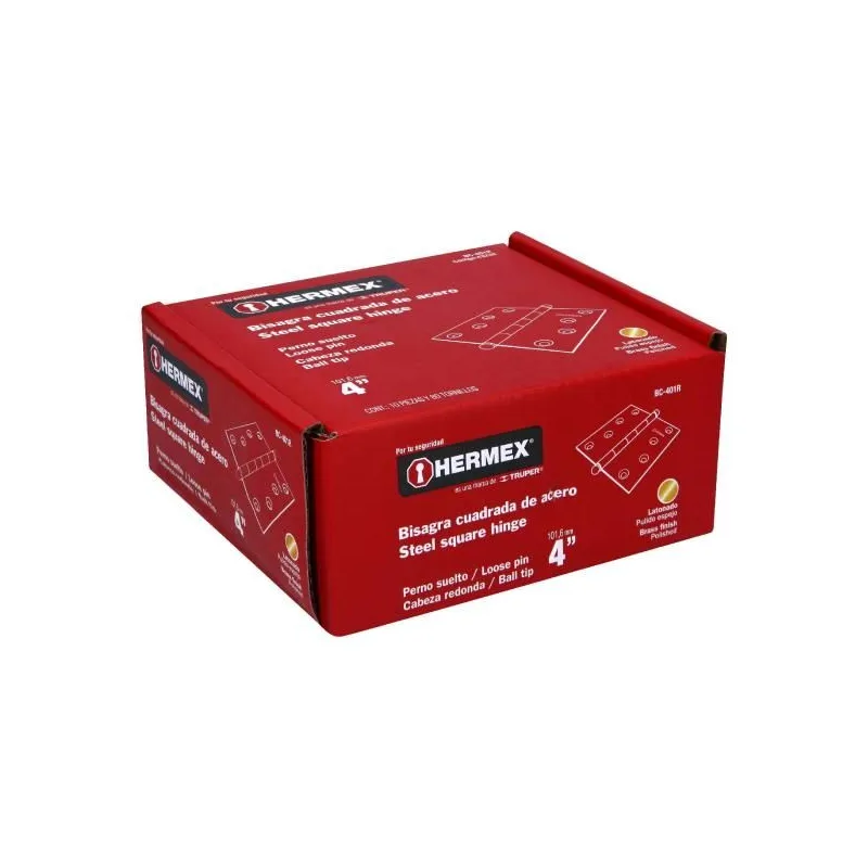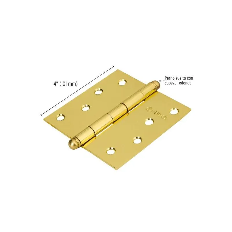 Bisagra cuadrada de acero dorado 4" Cabeza redonda Tipo capuchina Espesor 2.5mm Incluye pernos, BC-401R 43234 Hermex
