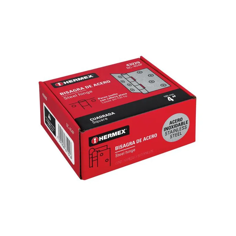 Bisagra cuadrada 4" acero inoxidable, plana, Hermex