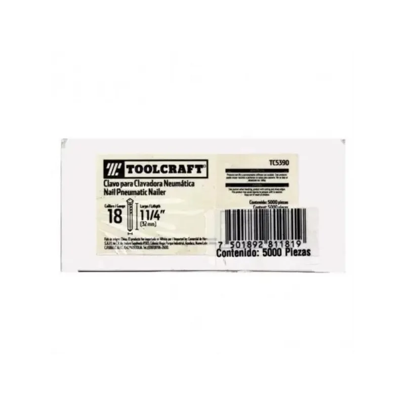 Clavos 1-1/4" Calibre 18 Clavadora Neumatica 5000Pzs Toolcraft TC5390