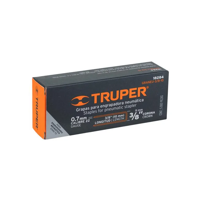 Grapas Calibre 22 Corona 3/8" L10mm Caja5000 para Engrapadora, GRANEU-3/8-10 18284 Truper
