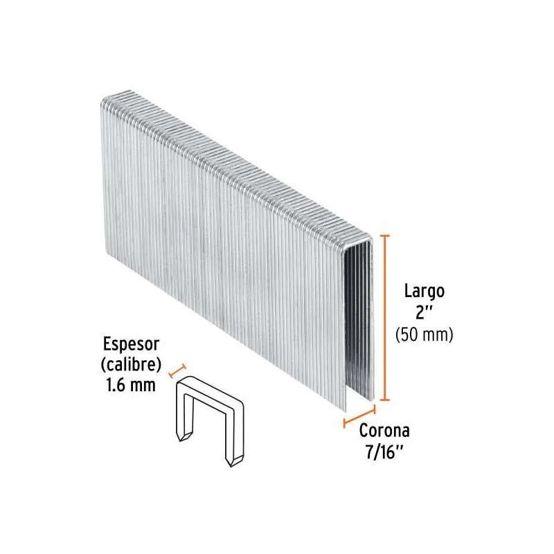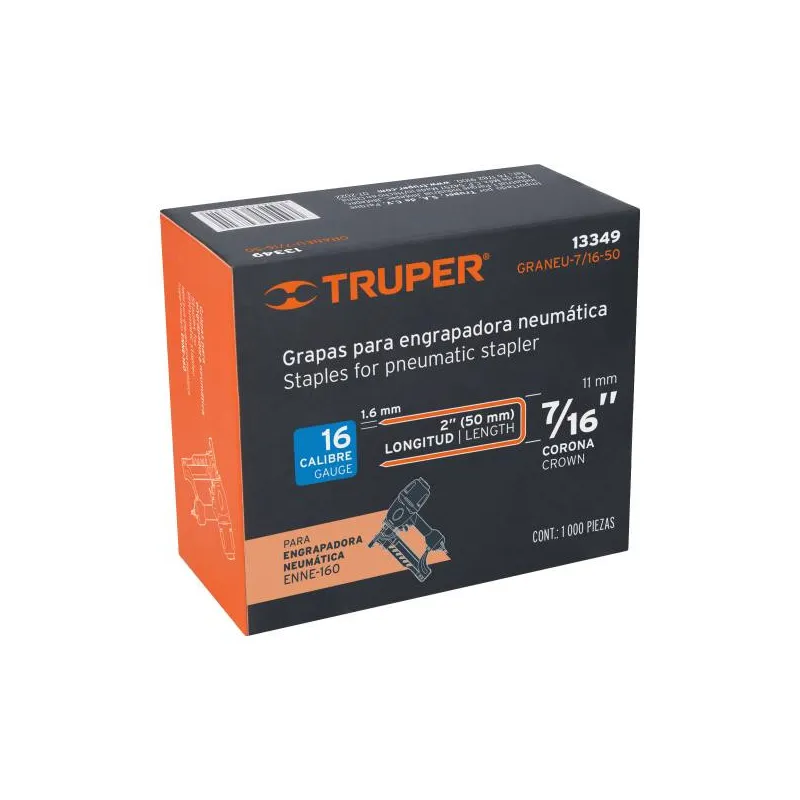 Grapas Corona 7/16" Calibre 16 L50mm Engrapadora Neumatica C1000u Truper 13349