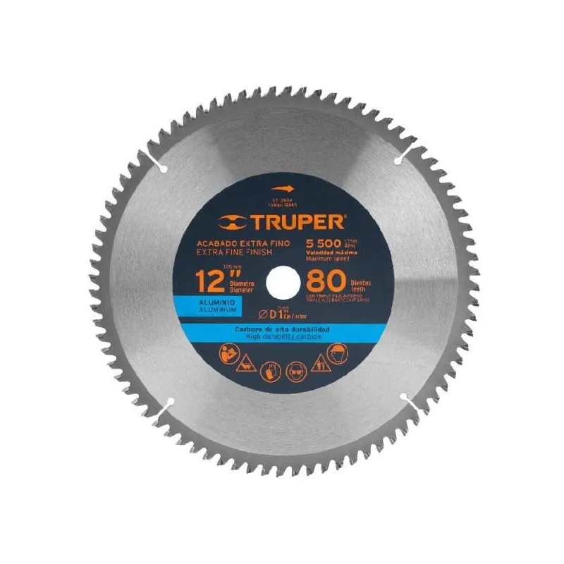 Discos sierras 12" 80Dientes C1", para aluminio, Truper 12685