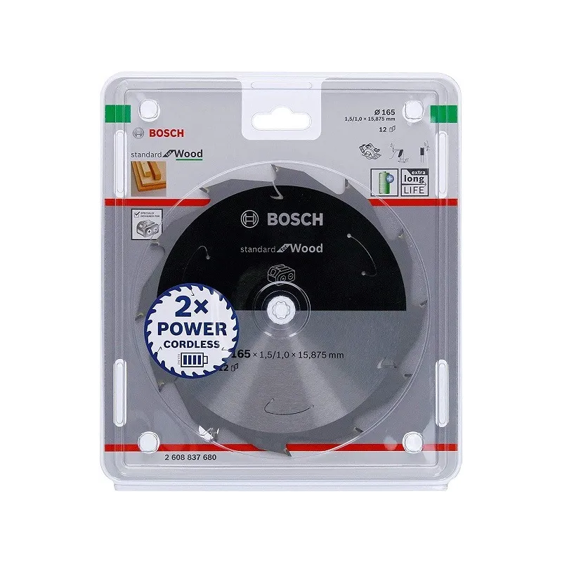 Discos de sierra Standard 165mm x20x1.5mm D12 para Madera Wood, Bosch 2608837684