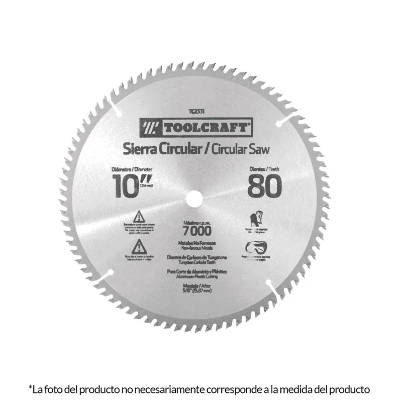 Discos Sierras Cirular 10" 80D E1" Madera Toolcraft TC2334