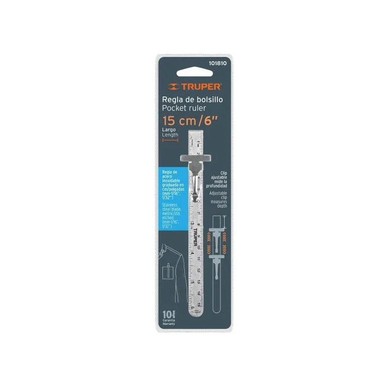 Regla de Acero Inoxidable 6" x0.5mm ClipAjustable, Truper 101810