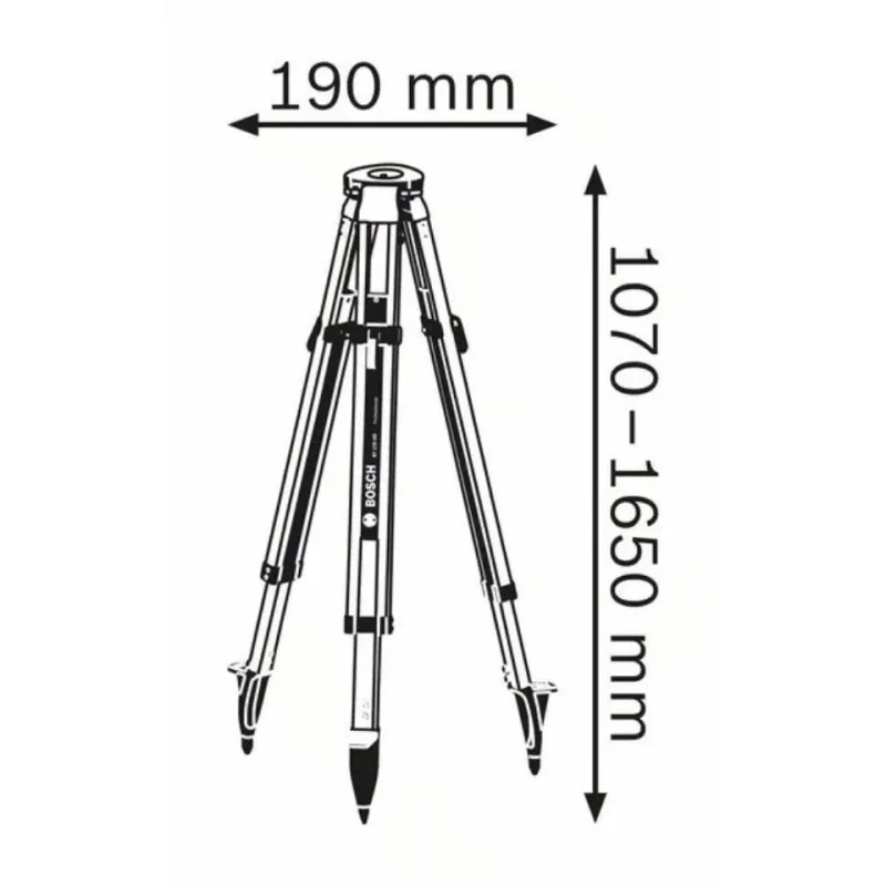 Tripode Bosch BT 160, Altura 97 160cm para nivel óptico automático GOL 26 D Rosca 5/8" Trípode de aluminio de aplicación versátil La estabilidad necesaria para medición en cualquier tipo de suelo. Para trabajos entre 97 y 160 cm de altura. Hecho de aluminio liviano: robusto y a la vez fácil de transportar debido al bajo peso.