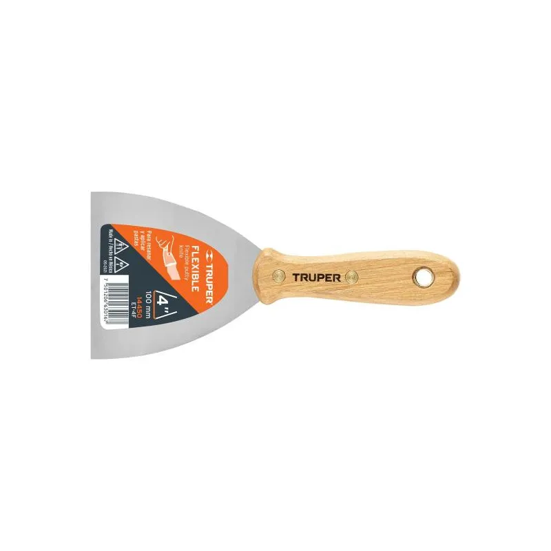 Espatula Flexible 4" Mango de Hickory Americano, acero alto carbono, Hoja Desbastada y Templada, ET-4F 14450 Truper