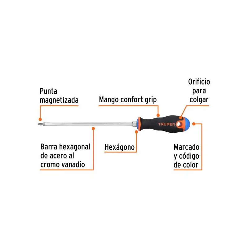 Desarmador Estrella 1/8" x8" Bhexagono ComfortGrip Magnetizadas, Truper 100835 Barra hexagonal fabricada de acero al cromo vanadio 2x más resistente al desgaste que las de acero al carbono Marcado y código de color para fácil identificación de medida y punta Punta magnetizada Hexágono en la barra que maximiza el torque con llave Mango Comfort grip...