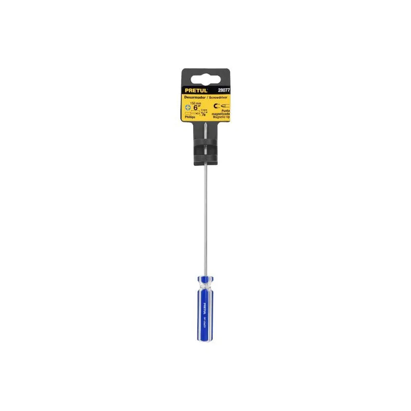 Desarmador de Cruz 3/16 X 6 Comfort Grip, Acero al Cromo Vanadio, Punta Magnetizadas, DP-3/16X6B 14067 Truper Barra hexagonal de acero al cromo vanadio, 2X más resistente al desgaste que las de acero al carbono Mango comfort grip con orificio para colgar Marcado y código de color para fácil identificación de medida y punta