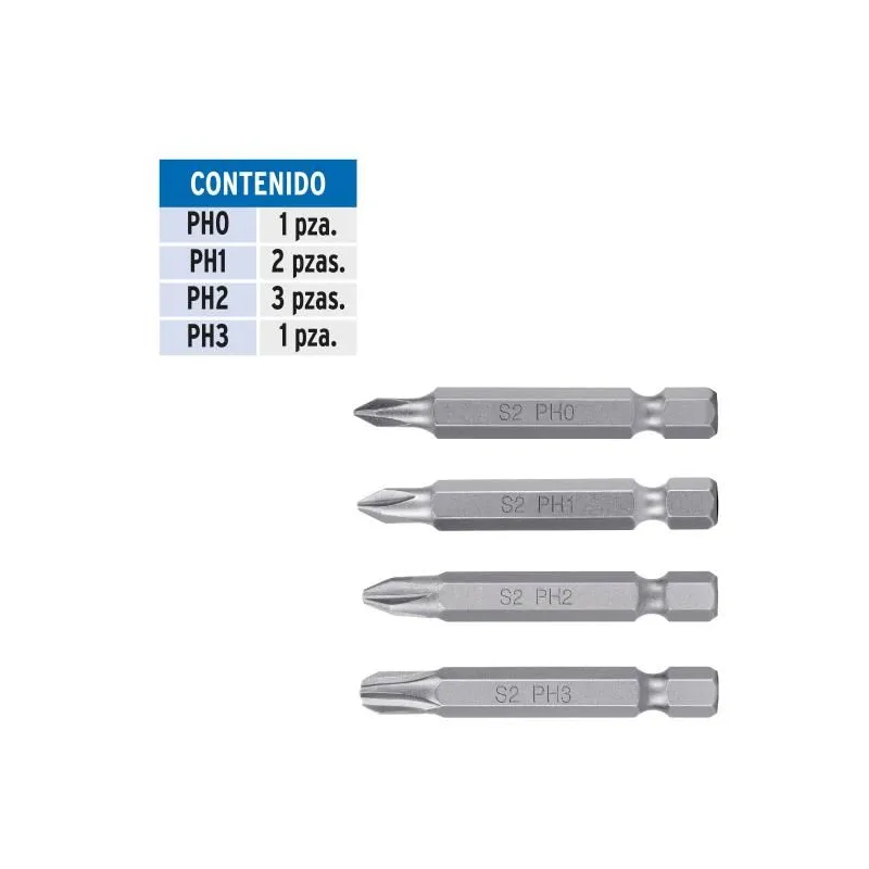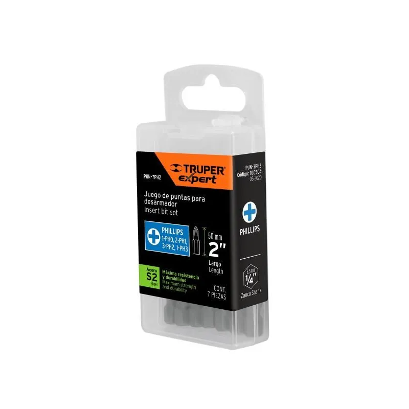 Juego de puntas Phillips combinadas PH0-PH3 x50mm 7 piezas, Truper 100504