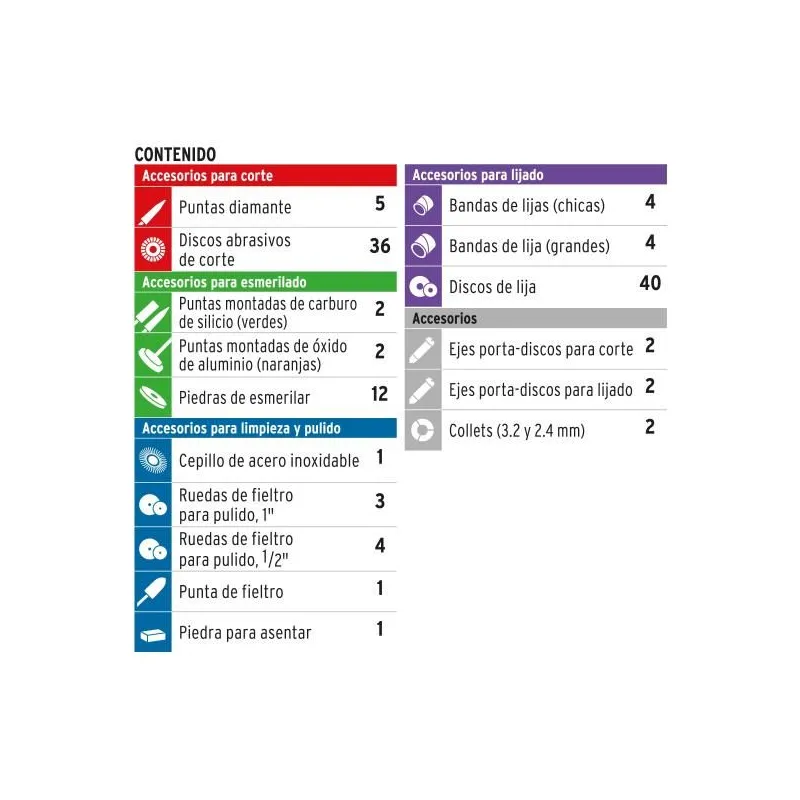 • Ideal para detalles de grabado, corte, desbaste, afilado, limpieza y pulido