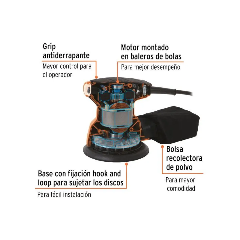 Lijadora Roto Orbital 5" 260W con BolsaRecolectora Truper 102466