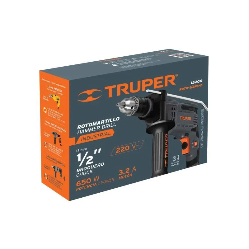 Taladros Percutores 1/2" 650W Vvariable Reversible, Truper 15200