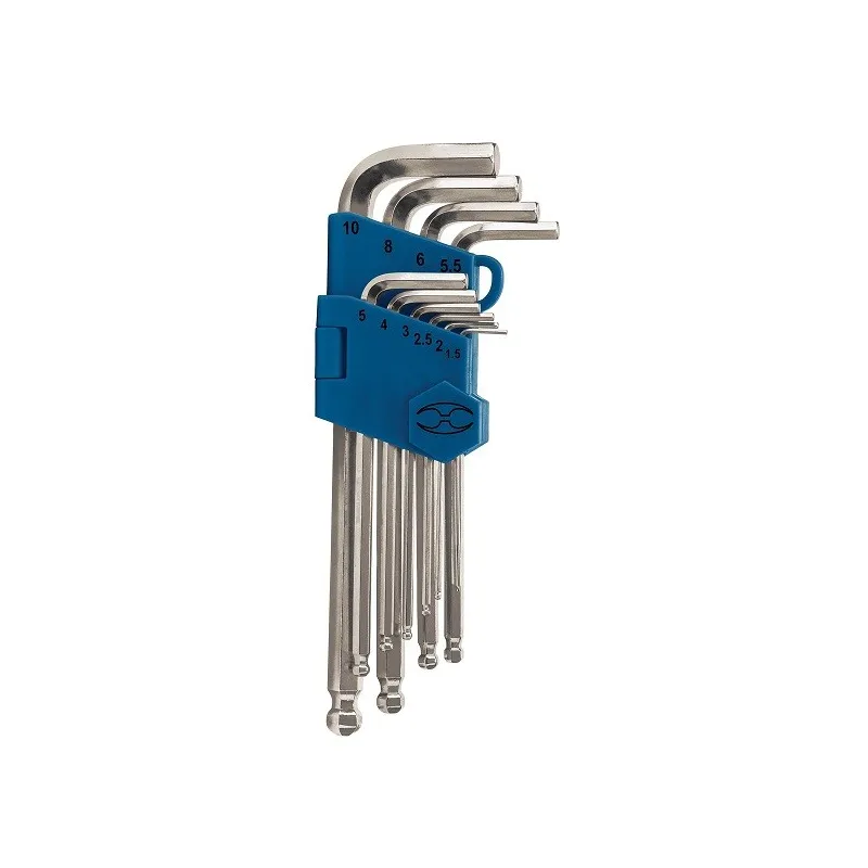 Juego de 10 llaves Allen, punta bola, largas, milimétricas
