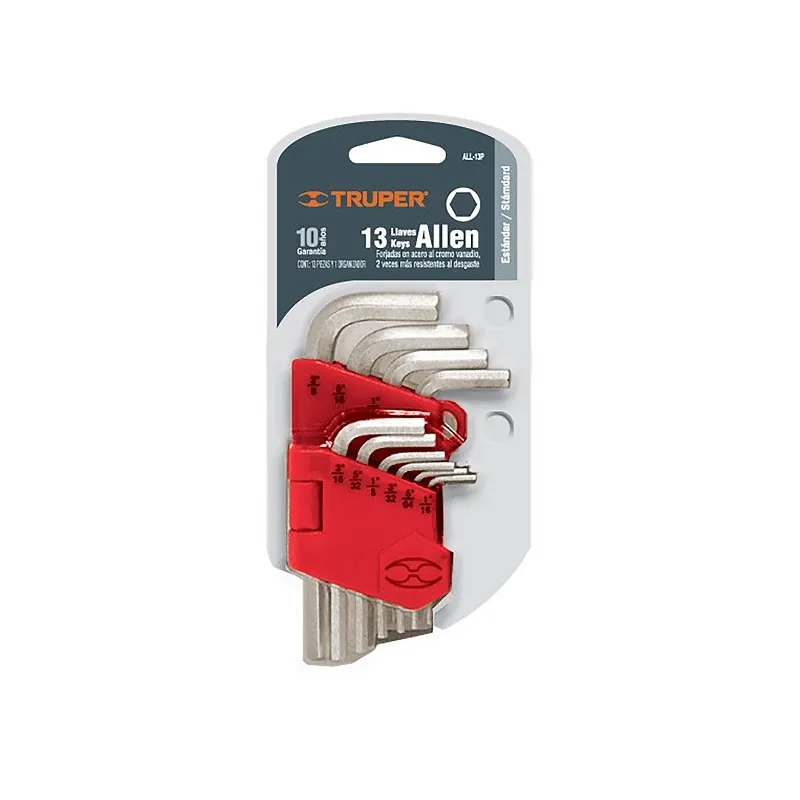 Juegos de 13 Llaves Allen Pulgadas PuntaHexagonal Truper 15545