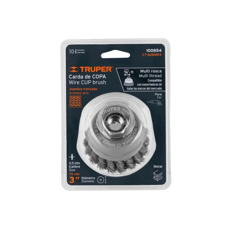 Cardas Copa 3" Trenzado Grueso MultiRosca, Truper 100854
