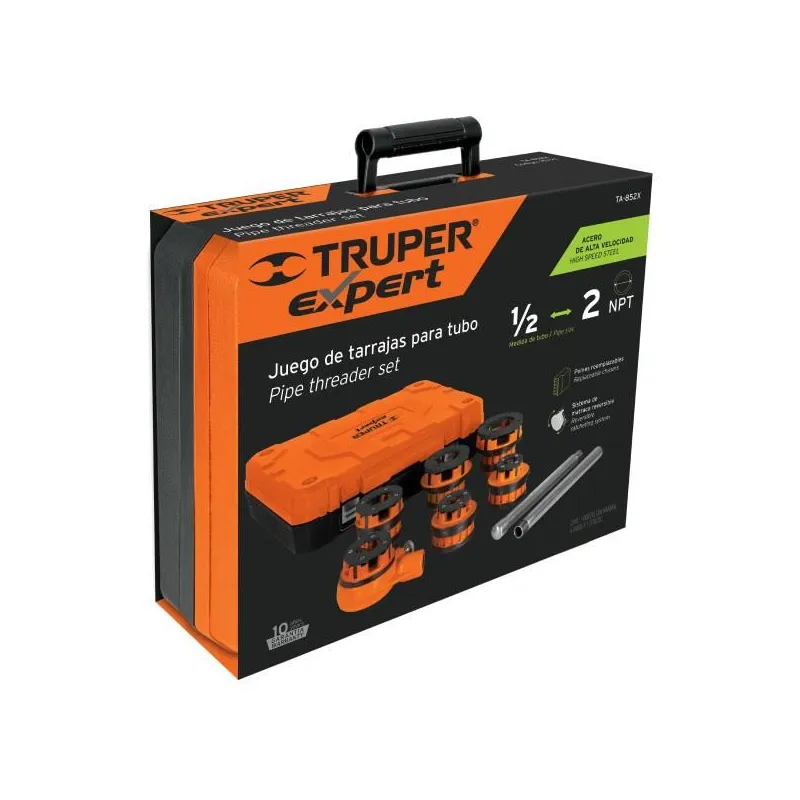 Juegos de Tarrajas para Tubos 7 Piezas HSS 1/2-2NPT, Truper 15721