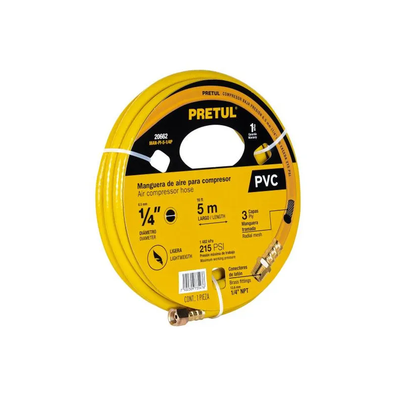 Mangueras para Compresor 1/4" x5m PVC Pretul 20662