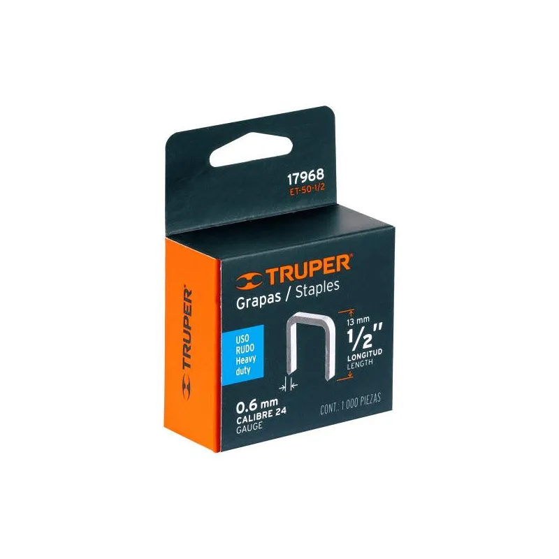 Grapas para Engrapadoras, Corona 10.7mm Largo 1/2" 13mm Espesor 0.6mm, ET-50-1/2 17968 Truper