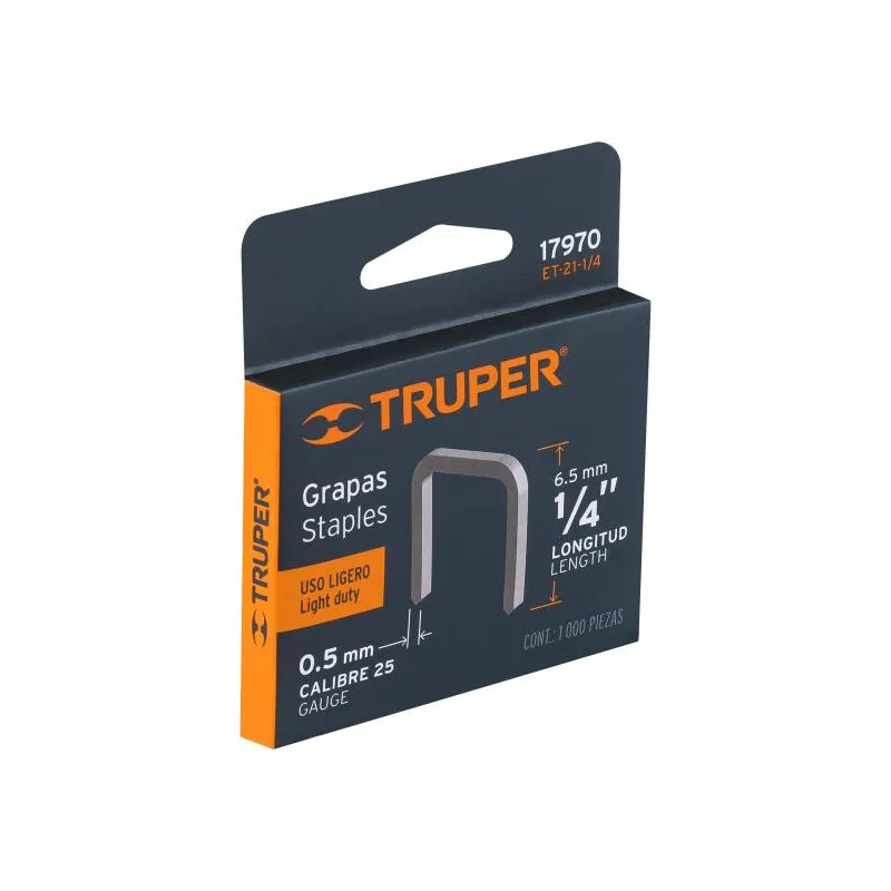 Grapas 1/4" Corona 29/64" Calibre 25 x1000u para Engrapadora ET-19 ET-21 ET-21P, ET-21-1/4 17970 Truper