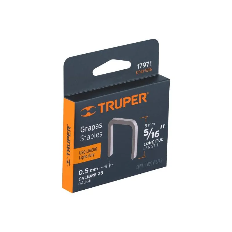 Grapas 5/16" Corona 29/64" Calibre 25 x1000u para Engrapadora ET-21 ET-21P, ET-21-5/16 17971 Truper