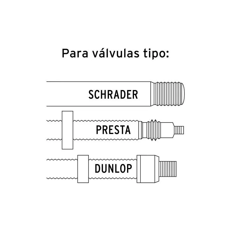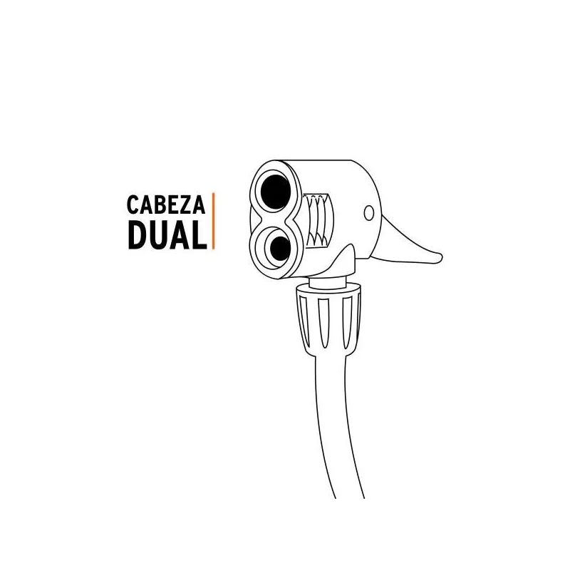 • Cabeza dual que permite el uso de válvulas europea (Presta), americana (Schrader) y Dunlop