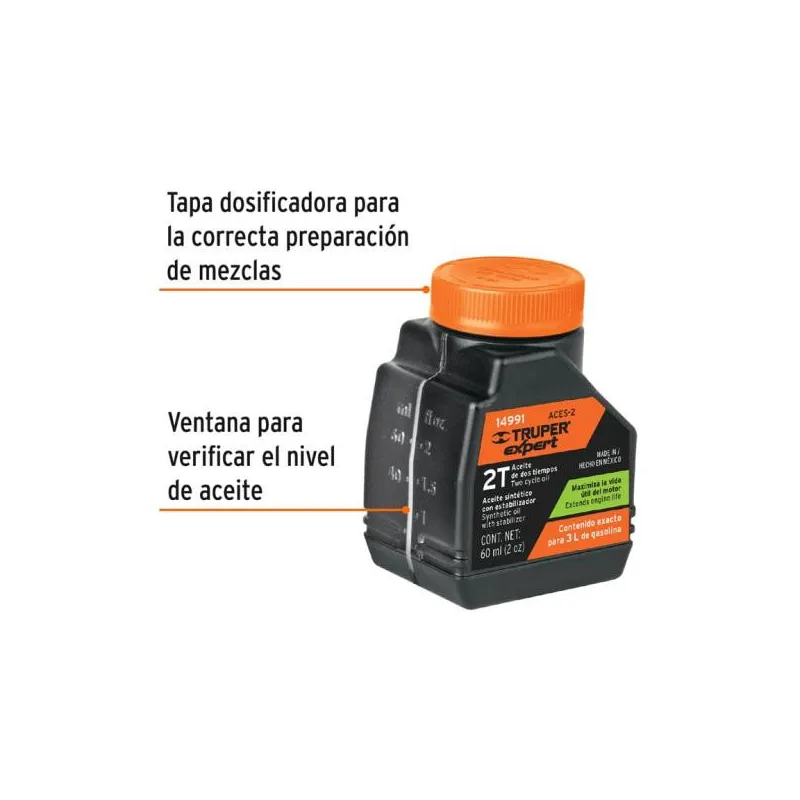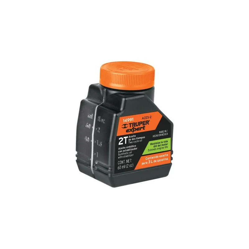 Aceite Sintetico 60ml 2oz Para 3L Gasolina motor 2 Tiempos Motos Desbrozadoras Motosierras, Truper ACES-2 14991