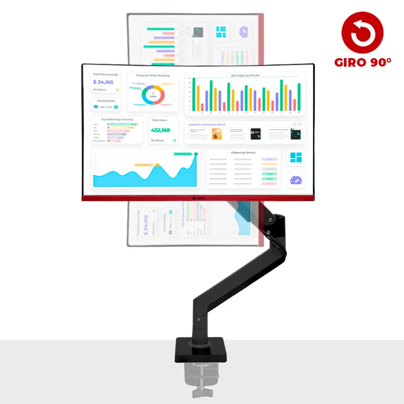 Soporte de escritorio para monitor de 22 a 35 pulgadas, ajustable en altura con brazo de resorte mecánico contrabalanceado para movimientos precisos y completos. Soporta hasta 12 kg por brazo y es compatible con montaje VESA (7.5 x 7.5 cm y 10 x 10 cm). Proporciona estabilidad, ergonomía y un entorno de trabajo cómodo.