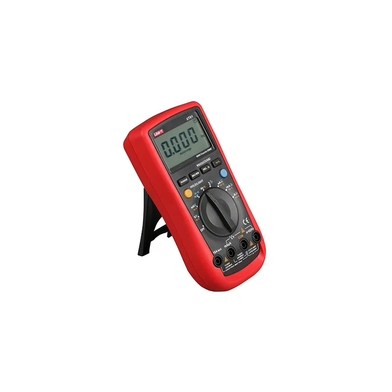 Multímetro digital UNI-T UT61C es un multímetro de alta precisión con tamaño de bolsillo – un aparato portátil y cómodo, alimentado por una batería de 9 voltios. Multímetro UNI-T UT61C mide varios parámetros (voltaje, corriente, resistencia, capacitancia, frecuencia, temperatura), efectúa los test (chequeo de diodos, continuidad de circuitos), tiene funciones de apagado automático, retención de datos, visualización de datos en forma de barras analógicas.