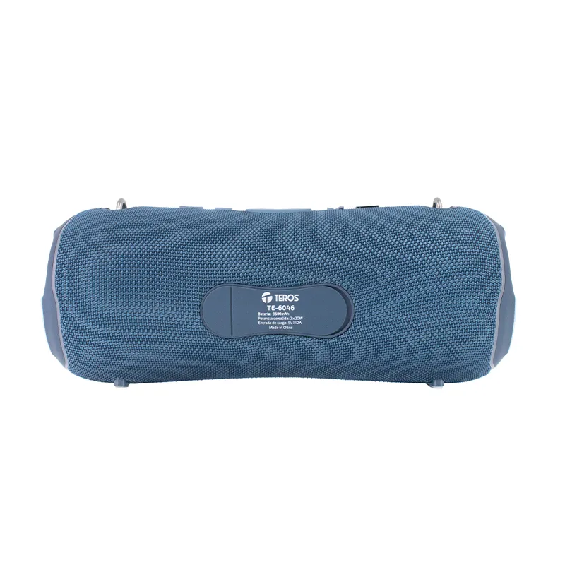 El parlante Bluetooth TEROS TE-6046B de 40W ofrece un sonido potente y claro con un rango de frecuencia de 120Hz a 18kHz. Con Bluetooth 5.3, radio FM, ranura para microSD y entrada auxiliar, es perfecto para diferentes fuentes de audio. Además, cuenta con luces RGB, resistencia IPX5 y tecnología TWS para conectar dos dispositivos. Su batería de 3600mAh permite hasta 2.5 horas de reproducción a volumen máximo.